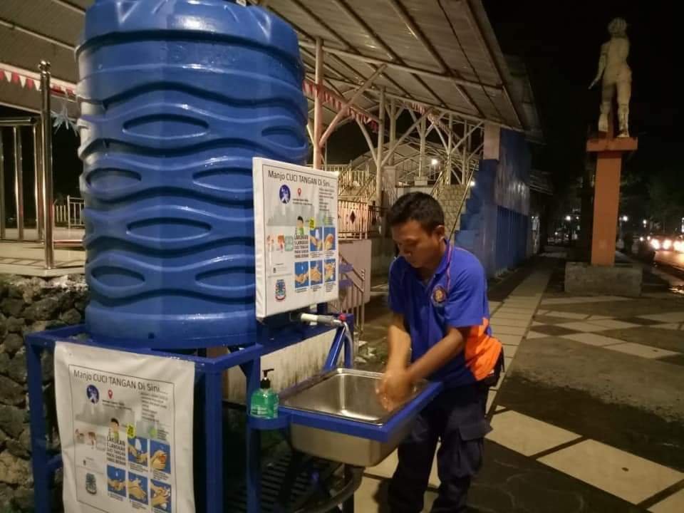 MANADO — Selain intens melakukan penyemprotan di sejumlah fasilitas umum, kantor pelayanan hingga ruas jalan protokol, Satgas Penanganan Covid-19 Kota Manado juga turut memastikan tempat cuci tangan yang disediakan pemerintah kota berfungsi dengan baik.