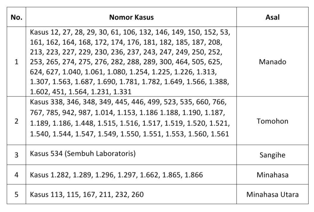 MANADO- Provinsi Sulawesi Utara (Sulut) kembali ketambahan pasien Covid-19 yang telah dinyatakan sembuh cukup signifikan, yakni sebanyak 126 orang pada Selasa (21/7/2020) ini.