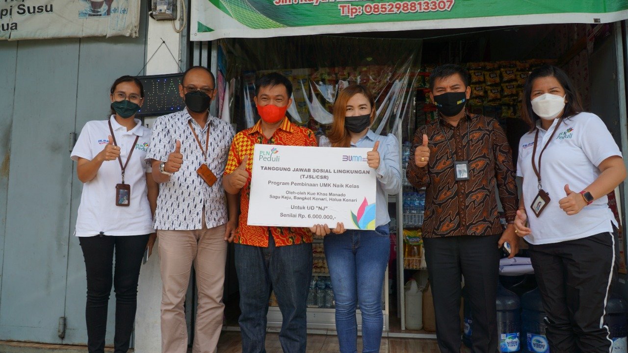 Manajemen PLN Unit Induk Wilayah (UIW) Suluttenggo yang diwakili oleh Senior Manager KKU, Wijaya Gautama memberikan secara simbolis bantuan kepada UD NJ (Kue Khas Manado), Jumat (12/11/2021).