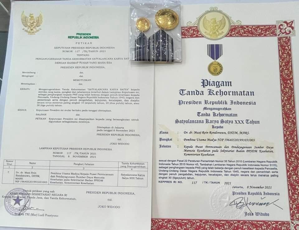 Tak hanya itu, Maxi Rondonuwu juga menerima penghargaan Satya Lencana Karya Satya XXX Tahun dari Presiden RI.