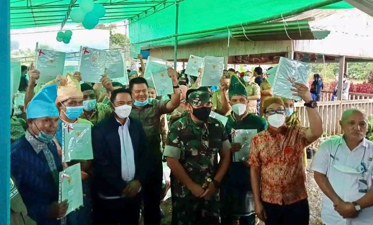 BOLTIM – Bupati Sam Sachrul Mamonto menyerahkan kurang lebih 1.000 sertifikat Tanah Objek Reforma Agraria (TORA) tahun 2021 kepada masyarakat Kabupaten Bolaang Mongondow Timur (Boltim), pada kegiatan pencanangan Kampung Reforma Agraria yang diselenggarakan oleh tim Gugus Tugas Reforma Agraria (GTRA) bekerjasama dengan Pemkab Boltim, bertempat di Desa Mooat Kecamatan Mooat, Rabu (12/1).