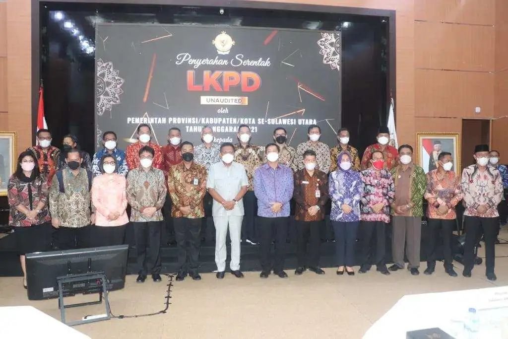 Dalam proses penyerahan LKPD Unaudited diawali dengan penyerahan LKPD Pemprov Sulut oleh Gubernur Sulut Olly Dondokambey, SE, Kepada BPK-RI, kemudian diikuti oleh semua kepala daerah se-Sulut. (Novianti Kansil)