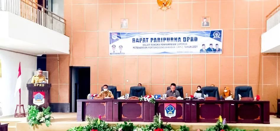 BOLTIM – Dewan Perwakilan Rakyat (DPRD), Kabupaten Bolaang Mongondow Timur (Boltim), Menggelar Rapat Paripurna dalam rangka penyampaian laporan keterangan pertanggung jawaban (LKPJ) Pemerintah Kabupaten (Pemkab) Boltim, tahun 2021.