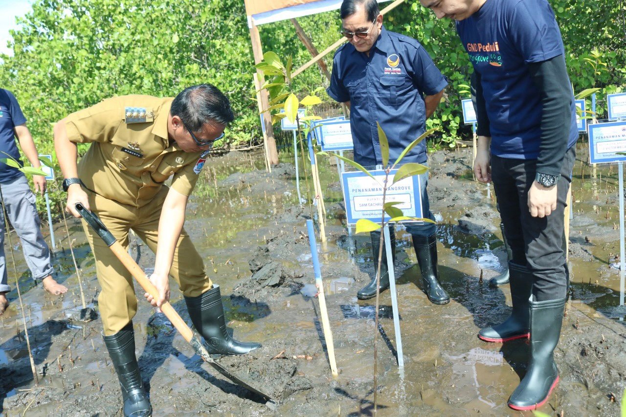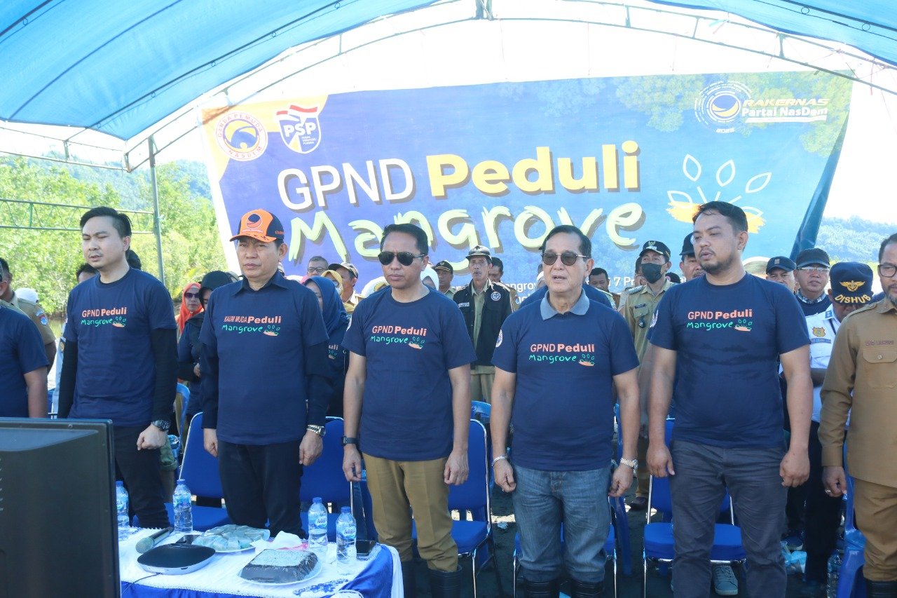 Penanaman Pohon Mangrove dengan tema “SEMANGAT RESTORASI MERAWAT BUMI”, Kementerian Lingkungan Hidup dan Kehutanan bekerja sama dengan PP Garda Pemuda Nasdem dilakukan serentak secara virtual dengan Tujuh Provinsi.