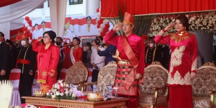 Gubernur Olly Dondokambey menjadi Inspektur Upacara (Irup) dengan mengenakan pakaian adat Minahasa. Begitu pula Wakil Gubernur Steven Kandouw tampil dengan pakaian adat Bolaang Mongondow (Bolmong).
