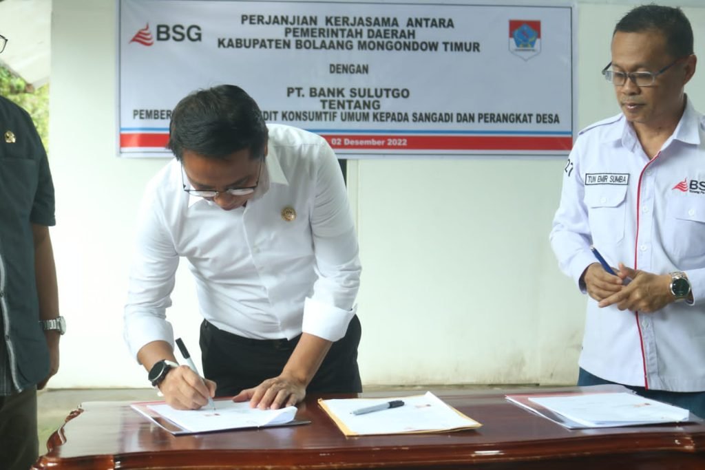 BOLTIM – Terkait pemberian fasilitas kredit konsumtif umum kepada sangadi dan perangkat desa, Bupati Sam Sachrul Mamonto menandatangani perjanjian kerjasama antara Pemerintah Kabupaten Boltim dengan PT BANK SulutGo (BSG), bertempat di Rumah Dinas Bupati Boltim, Jumat (02/12).