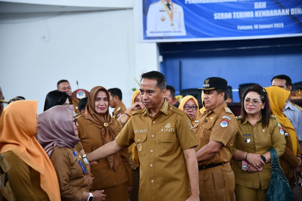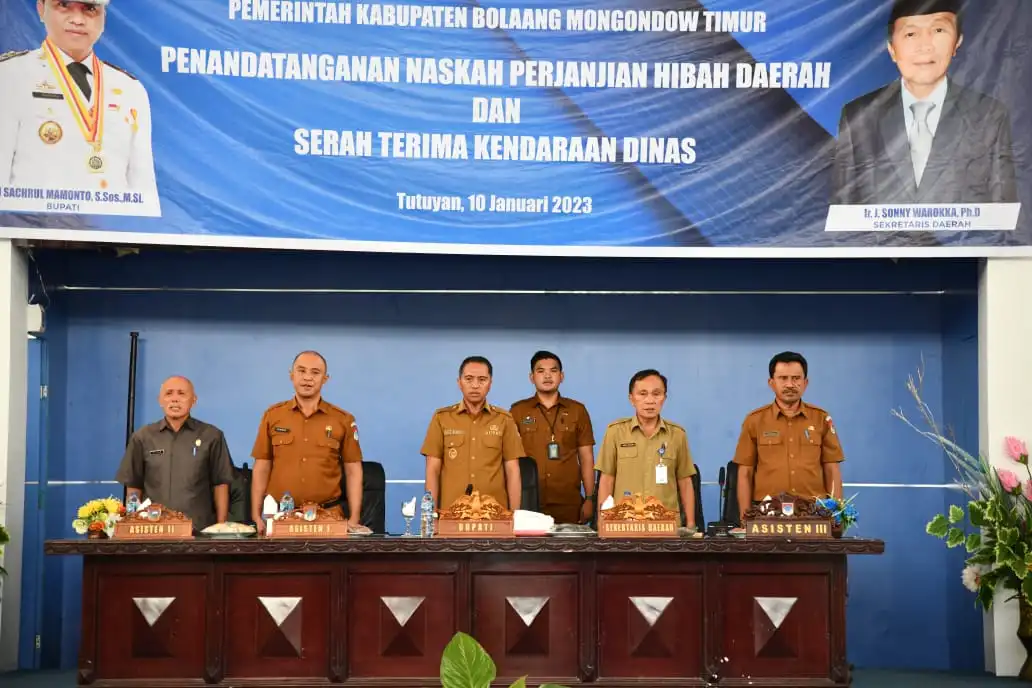 BOLTIM – Bupati Bolaang Mongondow Timur (Boltim), Sam Sachrul Mamonto menandatangani Naskah Perjanjian Hibah Daerah (NPHD) dan Serah Terima Kendaraan Dinas (Kendis) , bertempat di Aula Lantai III, Kantor Bupati, Selasa (10/1/2023).