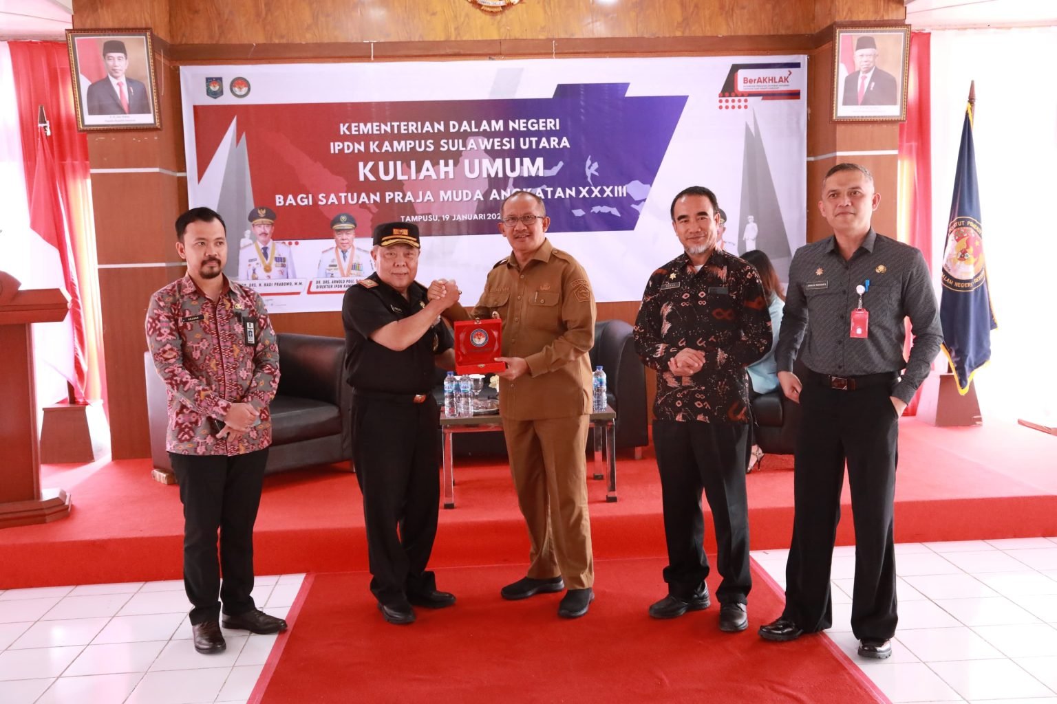 KOTAMOBAGU – Dalam rangka memperkenalkan berbagai aspek manajemen pemerintahan umum, Penjabat Walikota Asripan Nani berkunjung ke Institut Pemerintahan Dalam Negeri (IPDN) Kampus Sulawesi Utara, untuk memberikan Kuliah Umum kepada Satuan Praja Muda Angkatan XXXIII.