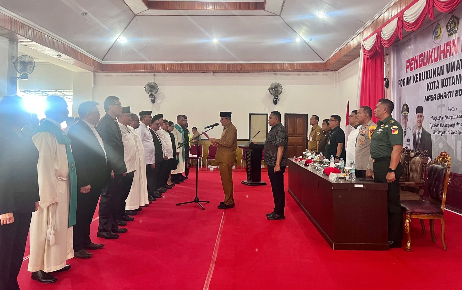 – Dalam rangka membangun dan memelihara, serta memberdayakan umat beragama untuk kerukunan dan kesejahteraan bagi seluruh pemeluk agama, Pemerintah Kota (Pemkot) Kotamobagu menggelar pengukuhan pengurus Forum Kerukunan Umat Beragama (FKUB) Kota Kotamobagu periode 2024-2028.