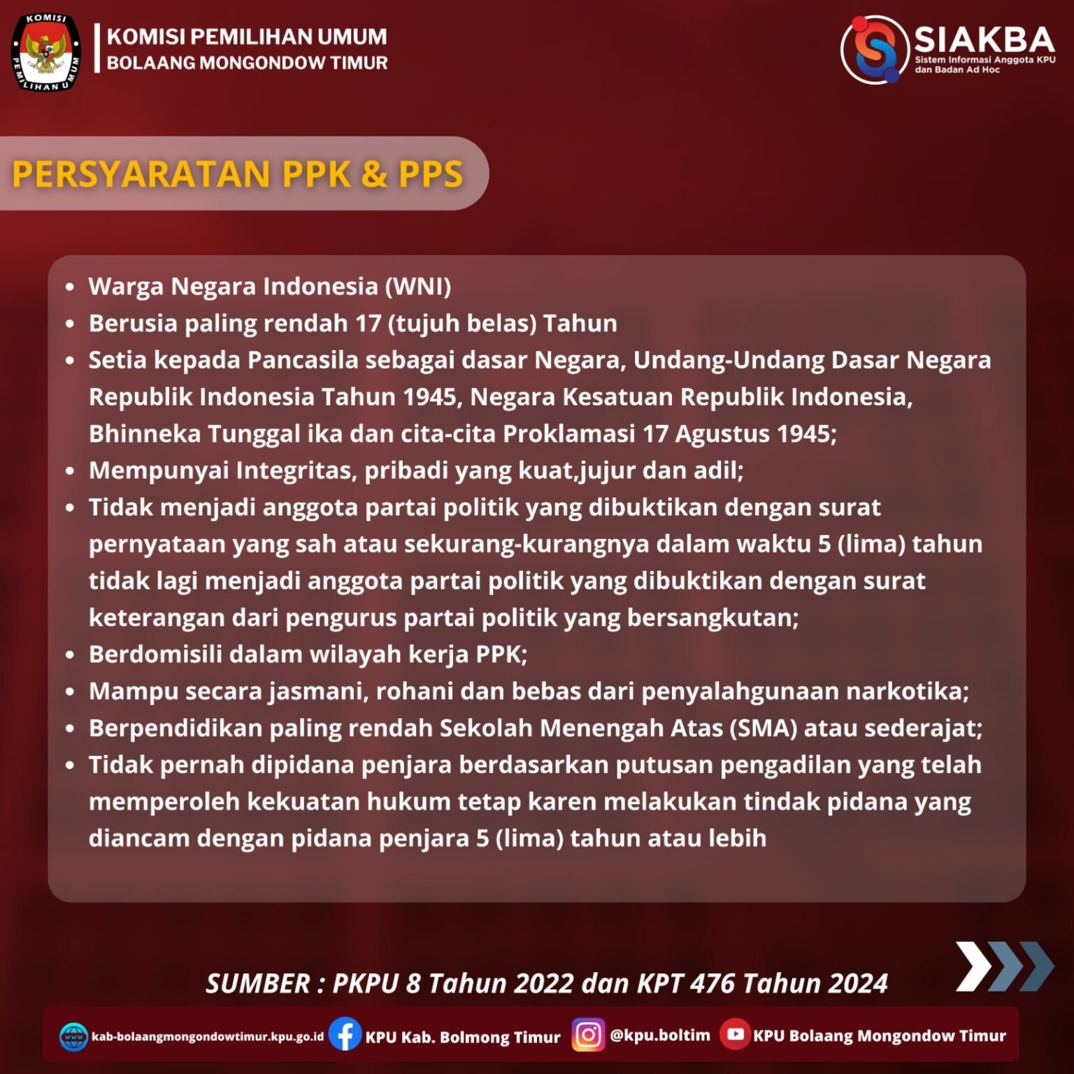 “Persyaratan dan kelengkapan dokumen tidak ada yang beda, seperti rekrutmen pada saat pemilu. Pendaftaran melalui Siakba, dan teman-teman yang sudah punya akun bisa menggunakan akun yang sudah ada, hanya nanti ada pilihan untuk pilkada,” tambahnya. (Novianti Kansil)
