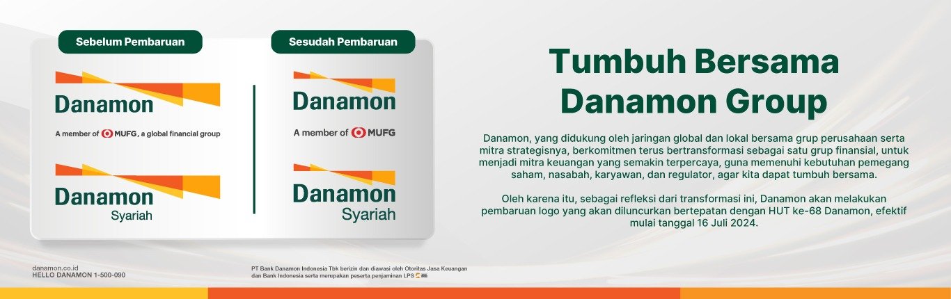 Sebagai refleksi dari komitmen untuk terus bertransformasi tersebut, Danamon akan melakukan pembaruan terhadap logo perusahaan, yang akan diumumkan kepada publik bersamaan dengan momentum ulang tahunnya, dan akan mulai berlaku efektif pada tanggal 16 Juli 2024.