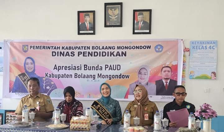 BOLMONG – Kepala Dinas (Kadis) Pendidikan Kabupaten Bolaang Mongondow (Bolmong) Farida Mooduto mendampingi Ketua TP-PKK Firlia Mokoginta-Mokoagow, menghadiri kegiatan Apresiasi Bunda PAUD, Senin, (2/9/2024).