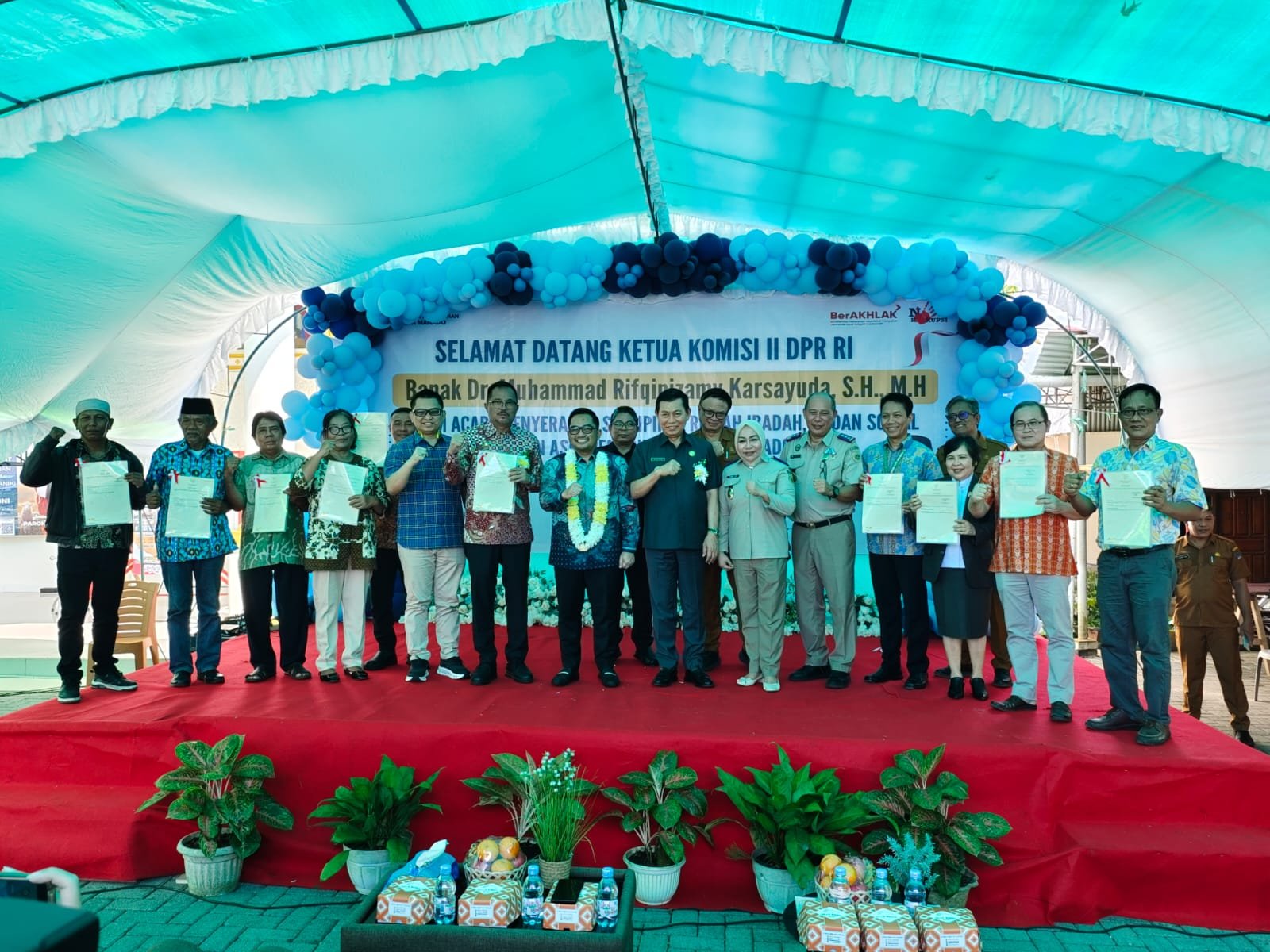 Teranyar, BPN Sulut bersama Ketua Komisi II DPR RI, Muhammad Rifqinizamy Karsayuda menyerahkan sertipikat kepada perwakilan rumah ibadah, badan sosial dan aset pemerintah Kota Manado pada Selasa (10/6/2025).