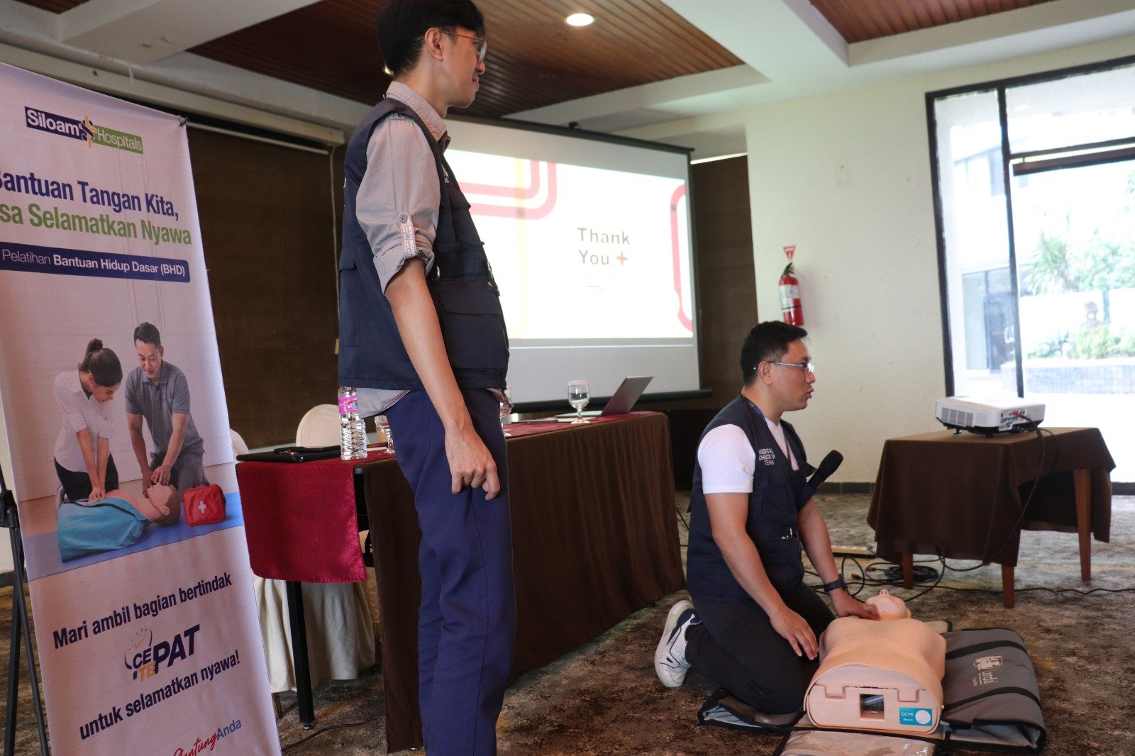 Kegiatan yang berlangsung pada pukul 10.00 WITA ini menghadirkan narasumber dari Siloam Hospitals, yaitu dr. Erfand S. Polii dan Ns. Feibry Victorianus Kotel, S.Kep, selaku tenaga ahli resusitasi.