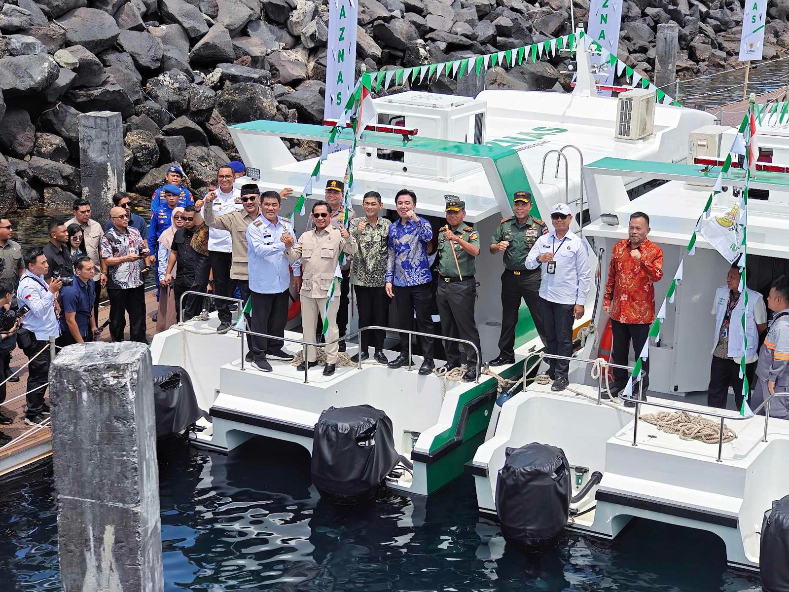 MANADO – Badan Amil Zakat Nasional (BAZNAS) RI menyerahkan dua kapal layanan kesehatan bergerak Rumah Sehat BAZNAS (RSB) atau yang dikenal dengan Ambulans Laut untuk Kabupaten Kepulauan Talaud dan Kabupaten Kepulauan Sangihe, di Manado, Kamis (23/10/2025).