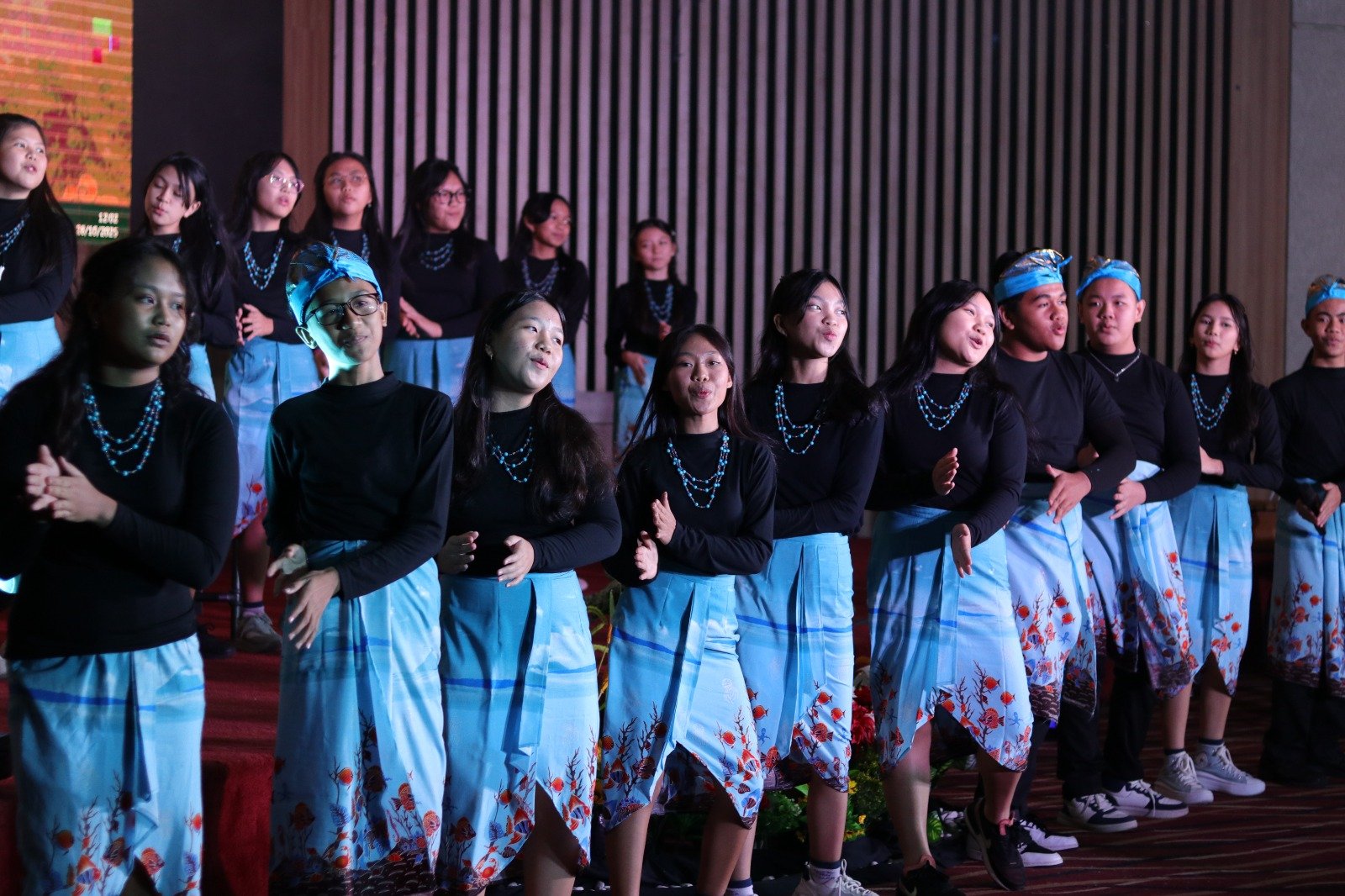 Suasana semakin hidup saat SMP Eben Haezar 2 Manado kembali tampil dengan kolaborasi Choir dan Kolintang yang membawakan medley lagu-lagu Nusantara secara memukau.