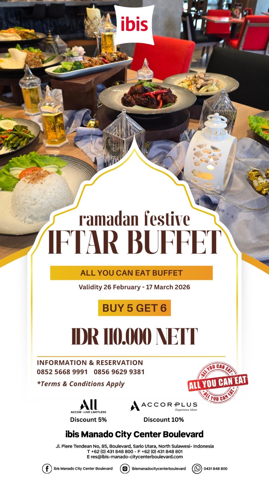 CUMA 110 RIBU! Ibis Manado Gelar Ramadan Festive Iftar Buffet “All You Can Eat”, Ada Promo Beli 5 Gratis 1!