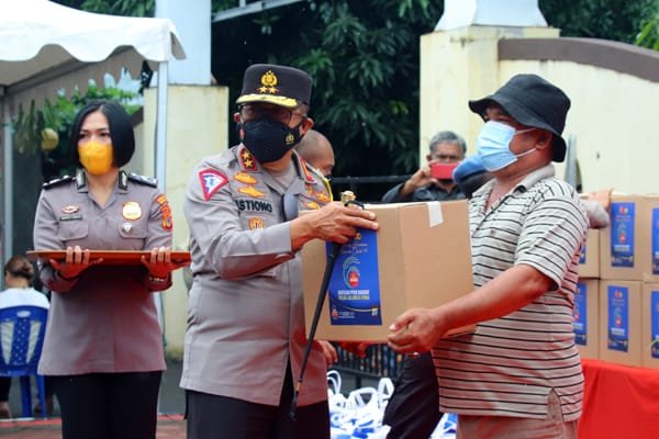 Kakorlantas Polri Tinjau Gerai Vaksinasi dan Serahkan Bansos kepada Sopir Angkot di Manado