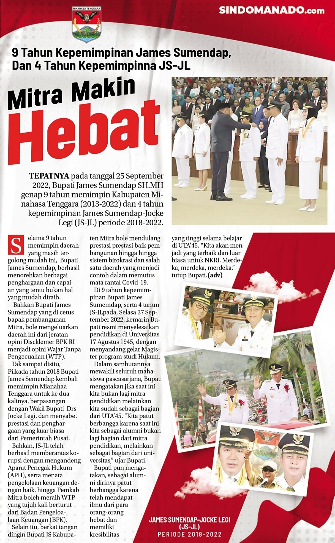 Mitra Makin Hebat! 9 Tahun Kepemimpinan James Sumendap dan 4 Tahun Kepemimpinan JS-JL