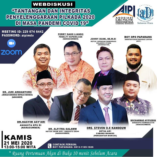 Jadi Sulut dan AIPI Manado Bahas Tantangan Penyelenggaraan Pilkada 2020 di Masa Pandemi Covid-19
