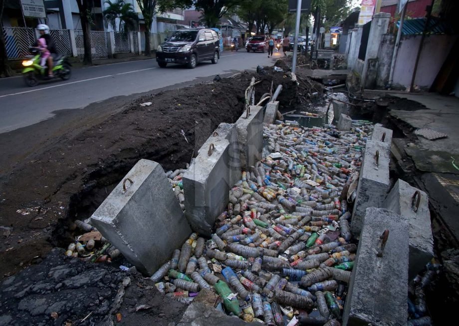 FOTO : Drainase Dipenuhi Sampah Botol Plastik