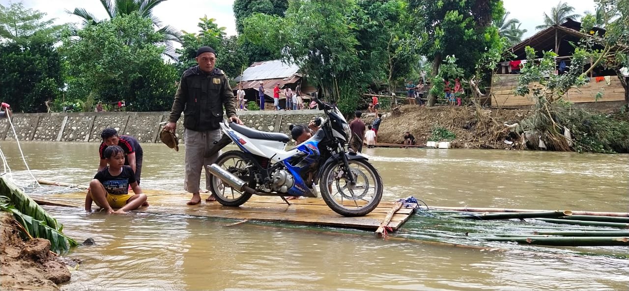 Jembatan Ambruk, Warga Desa Kosio dan Desa Kosio Barat di Bolmong Manfaatkan Rakit untuk Menyeberang
